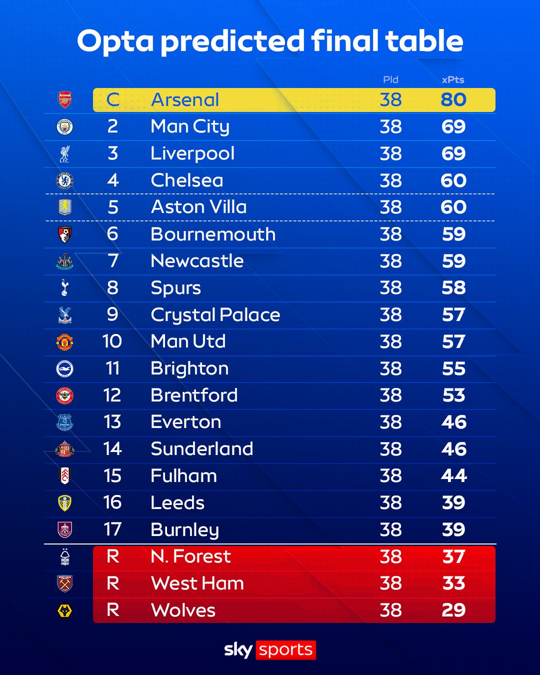 Opta’s predicted table